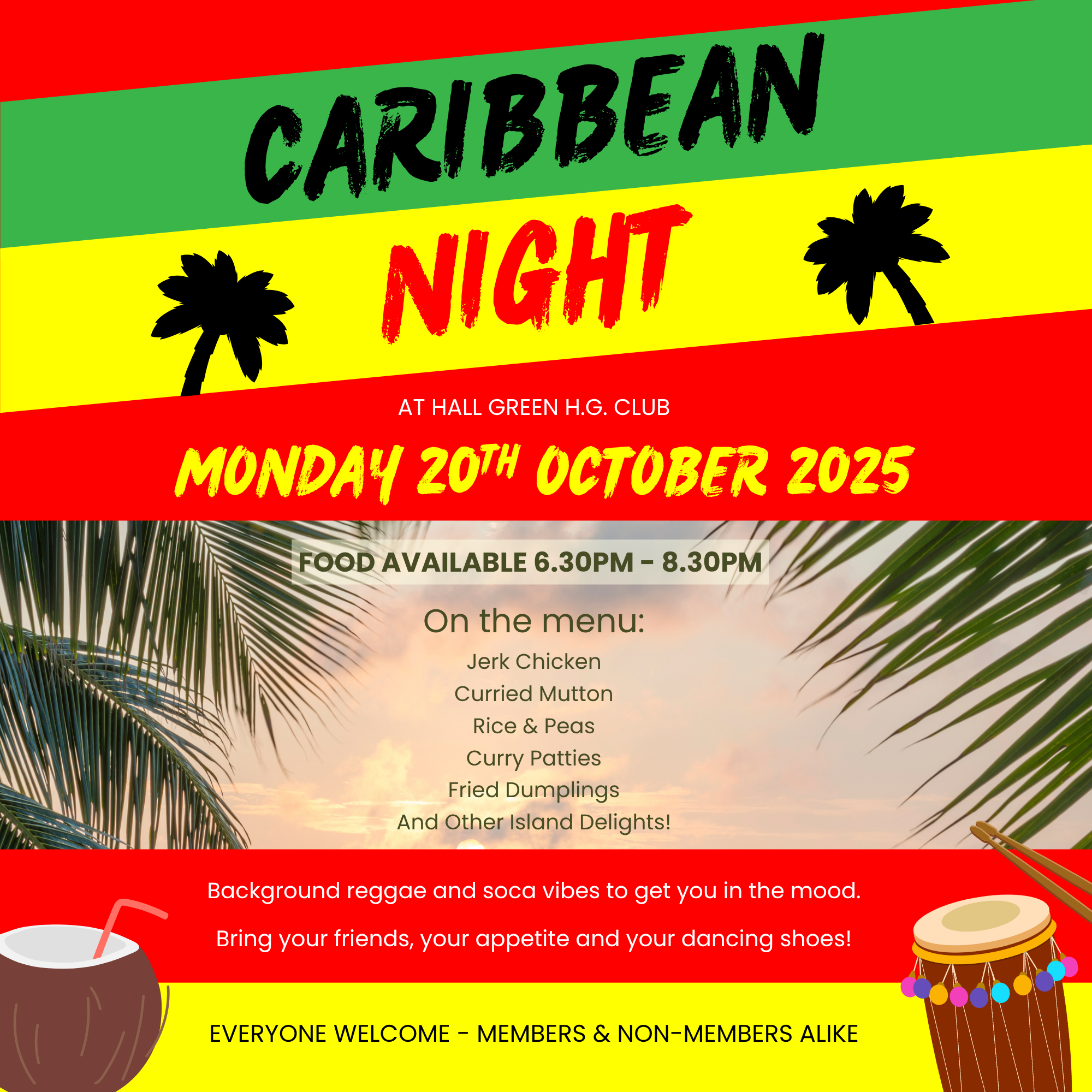 🌴 Join us for a sizzling evening, embracing the rich culture and flavours of the Caribbean with food, music and a warm Hall Green welcome.