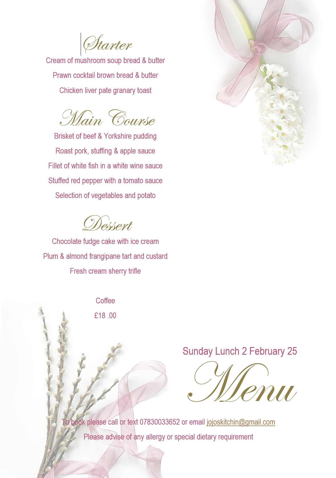 Join us for a sumptuous Sunday lunch this February, prepared by our talented caterers!